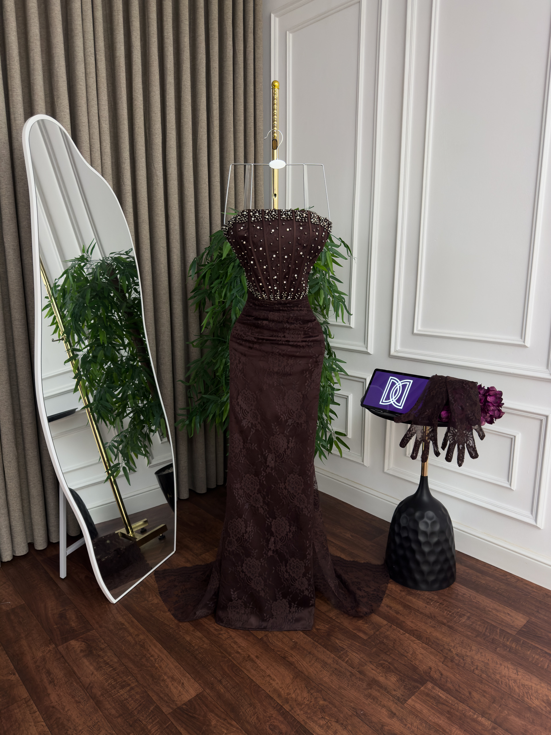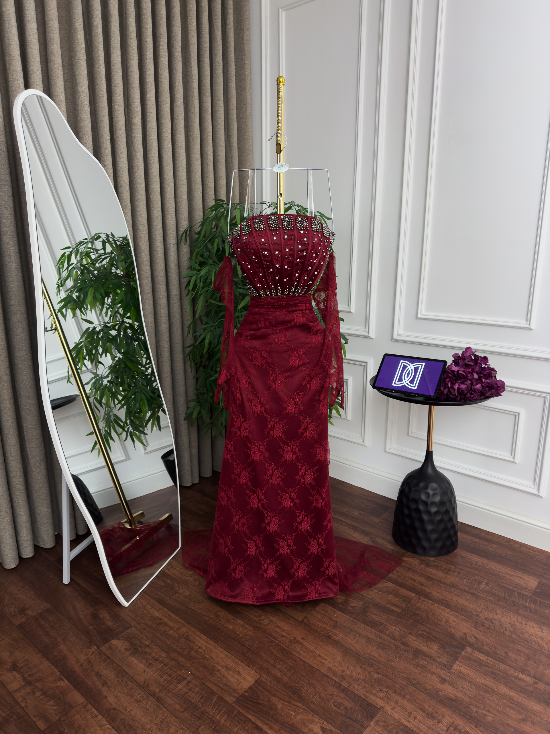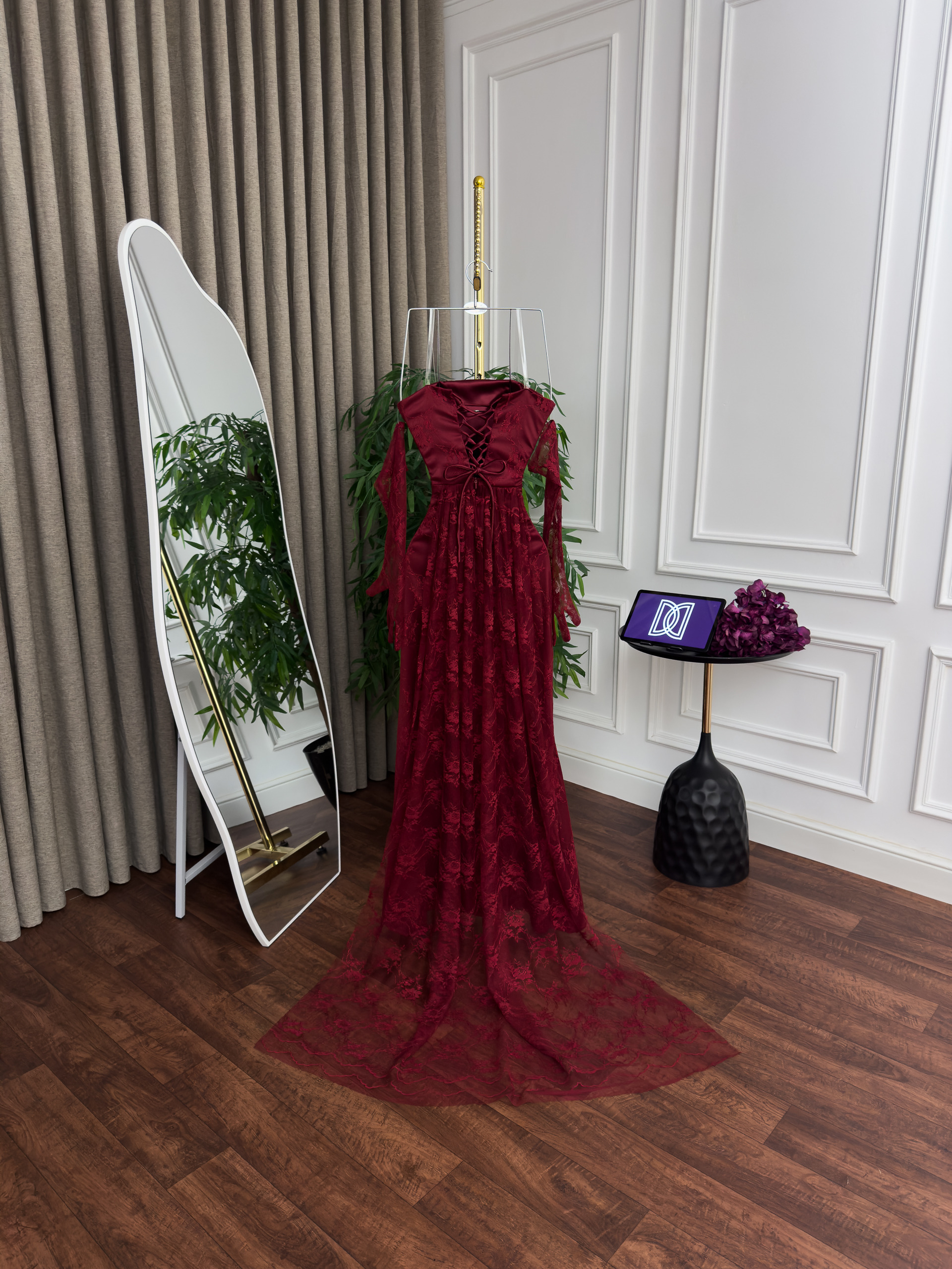 فستان سهره دانتيل تطريز كلوش ذيل