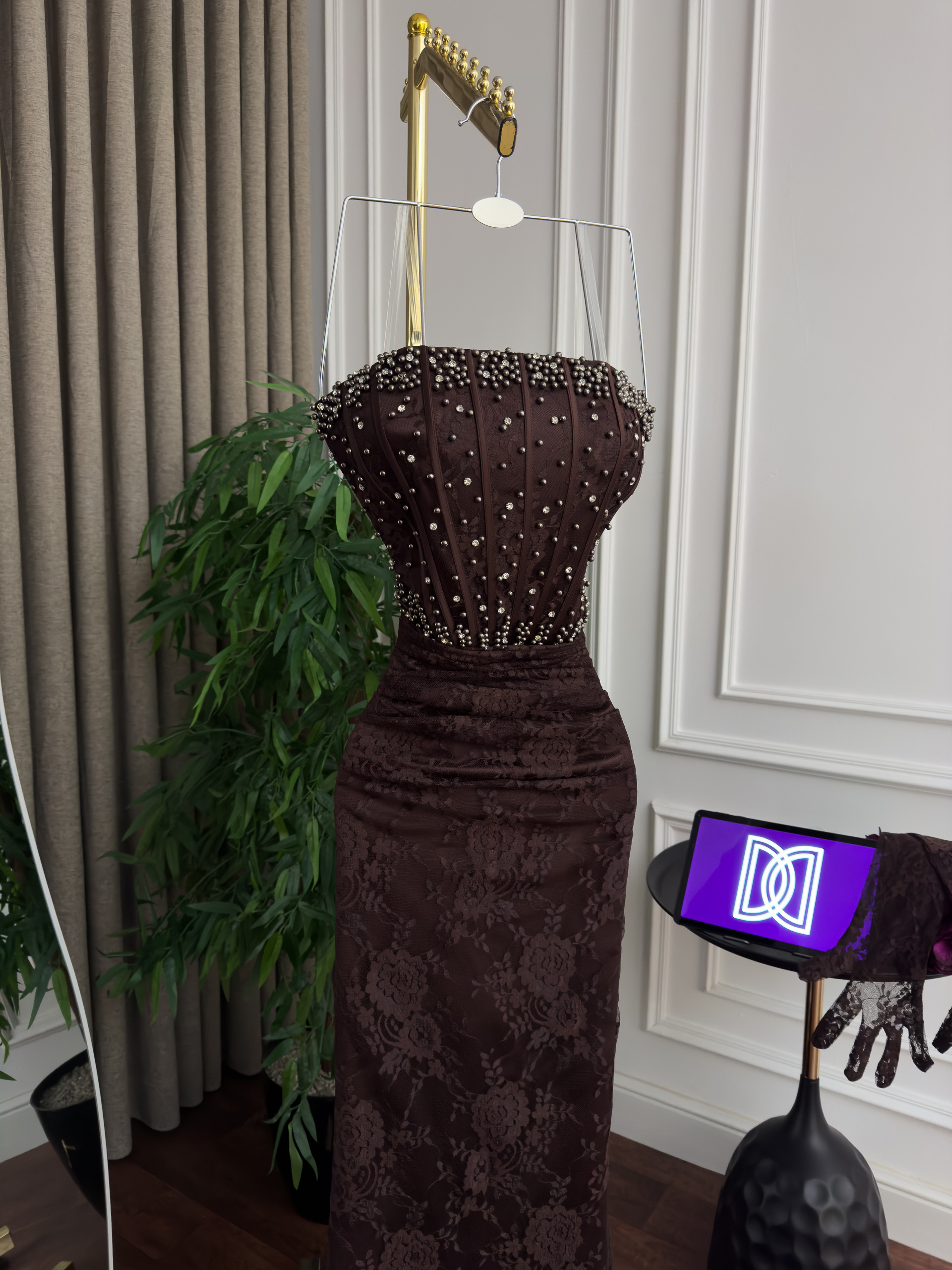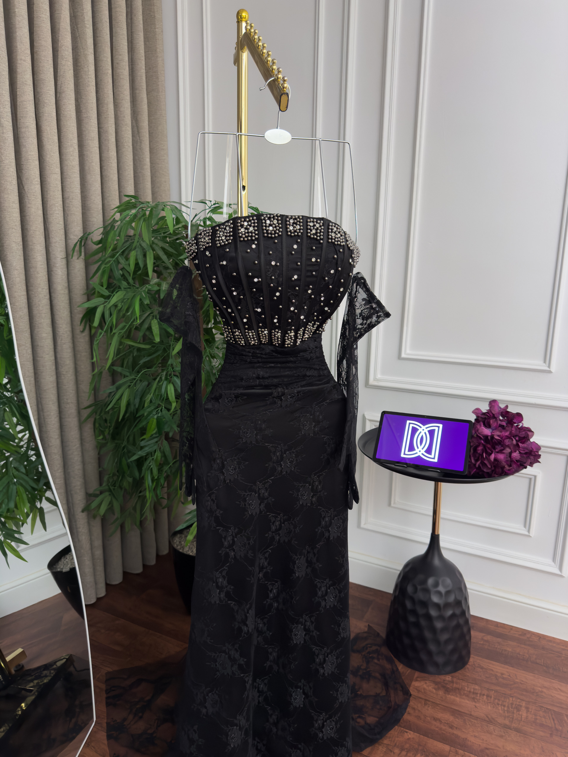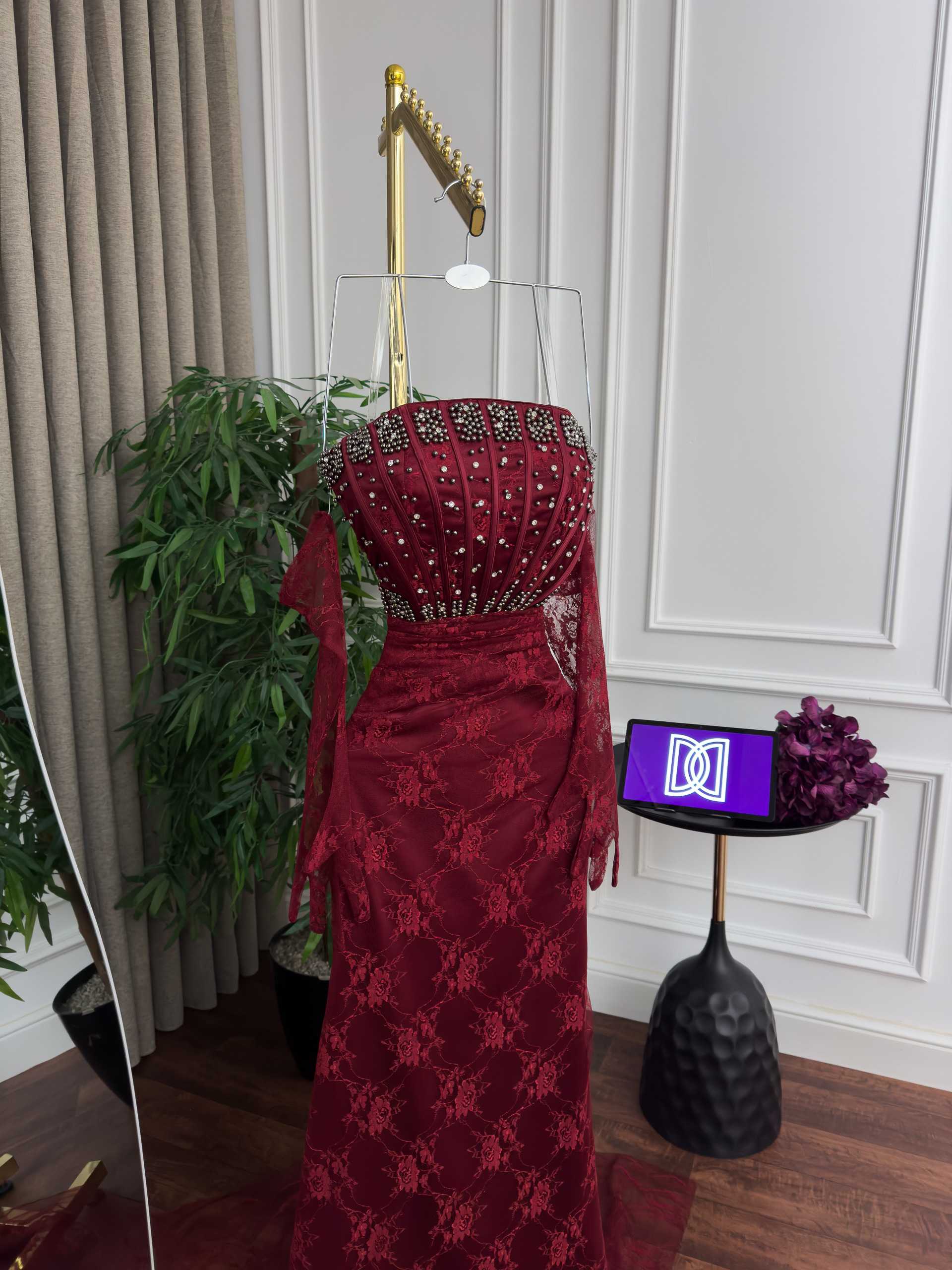 فستان سهره دانتيل تطريز كلوش ذيل