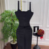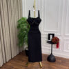 الأناقة تبدأ دائمًا مع الفستان الأسود، وهذا التصميم المميز يجمع بين البساطة والفخامة. يتميز بقصة ضيقة طويلة تبرز أنوثتك، مع تطريز ناعم من الخرز الأسود الذي يضيف لمسة فاخرة دون مبالغة. مثالي للسهرات،  وحتى المناسبات الرسمية.