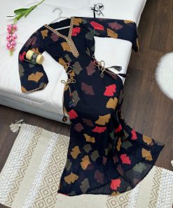 فستان سهرة _ نوع القماش _ شيفون جورجيت مشجر