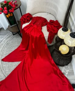 اكتشفي أحدث تشكيلةفساتين سهرة باللون الأحمر لإطلالة جريئة وأنيقة تناسب كل المناسبات.”
