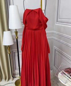 فستان سهرة لون احمر طويل