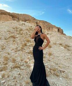 * كريب استرتش قصة رقبه كرستال-اكمام تل *