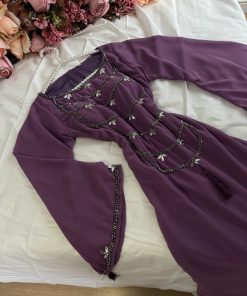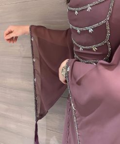 الخامه :شيفون ناعم مبطن + تطريز لممعه اصلي صدر كامل تطريز رااقي + كم تطريز