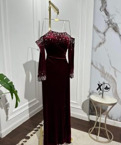 فستان سهرة مخمل فاخر بإطلالة أنثوية راقية