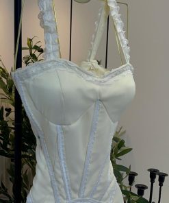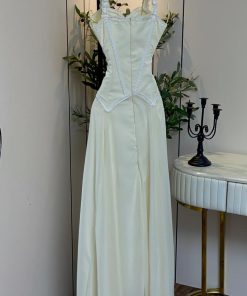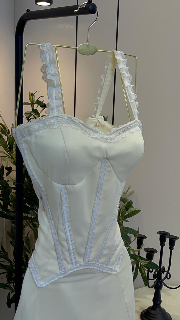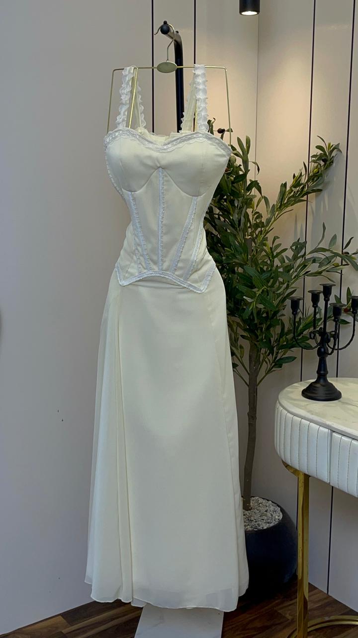 فستان أبيض طويل بتصميم كورسيه أنيق