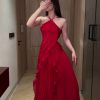 يتميز الفستان بجزء علوي أنيق بدون أكمام مزين بتفاصيل كريستال راقية حول الياقة والأكتاف، مع أزرار أمامية تضيف لمسة كلاسيكية جذابة. تنسدل التنورة بطبقات شيفون مطوية بانسيابية ناعمة تمنحك حركة خفيفة وإطلالة أنثوية ساحرة.