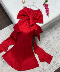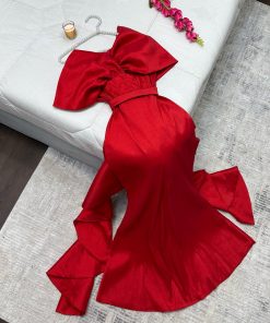 فستان أحمر بذيل طويل
