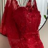 فستان أحمر فاخر إطلالة أنثوية راقية”