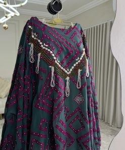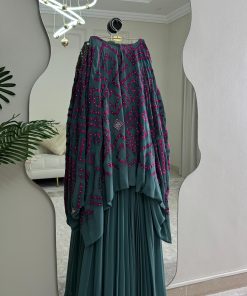تألقي بإطلالة أنيقة ومحتشمة مع فستان أخضر بترولي واسع بتطريز فوشيا فاخر من روزيتا السعودية، تصميم يجمع بين الرقي والجرأة الهادئة في آنٍ واحد.