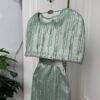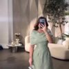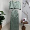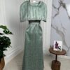 فستان بأناقة راقية وتصميم مناسب للسهرات والمناسبات الخاصة. يأتي بعد بعد أخضر زيتي ناعم وهادئ، فريد من القماش الفاخر مزخرف بخيوط زجاجي وتطريزات دقيقة على امتداد الاختلاف، خاصة في القسم السفلي منه، مما يضفي عليه لمسة من الرقي والخامة
