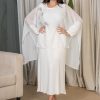 يأتي الفستان مع قطعة علوية مطابقة مزينة بتفاصيل ناعمة يمكن ارتداؤها لإطلالة أكثر احتشامًا وتميّزًا. خامته خفيفة ومريحة، مناسبة لفصل الربيع والصيف، ويمنحك مظهرًا راقيًا دون تكلف.