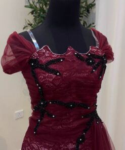 فستان أناقة ملكية عنابي إطلالة رائعة