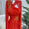 **فستان سهرة أنيق باللون الأحمر القاني**