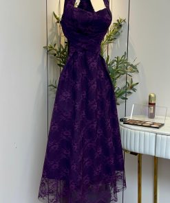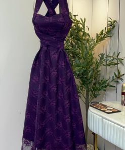 فستان بنفسجي قصير بدانتيل فاخر