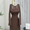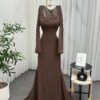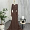 فستان بني أنيق بتفاصيل تبرز جمال القوام”