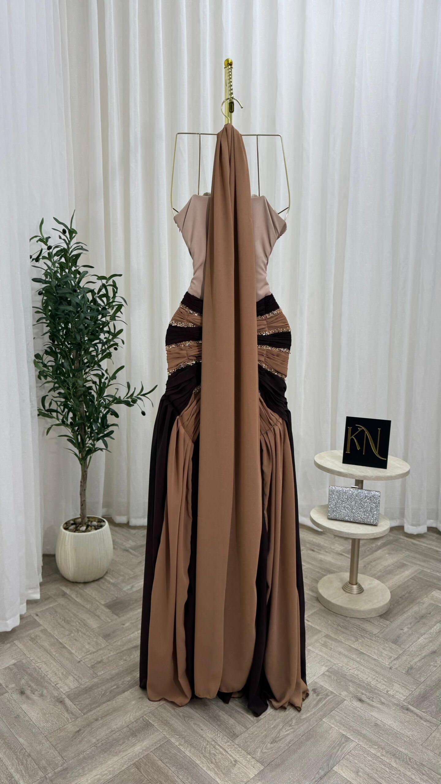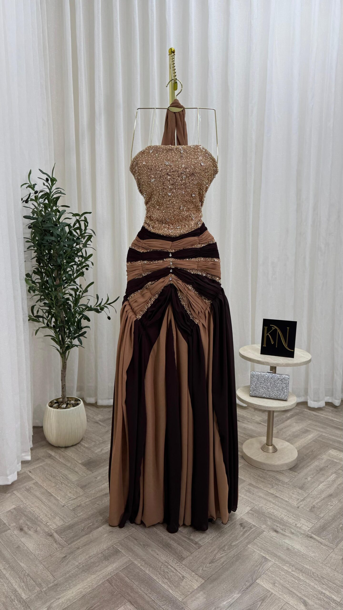 فستان بني وذهبي فاخر – تألقي بإطلالة ساحرة من متجر روزيتا