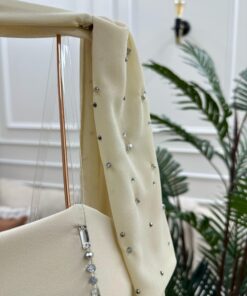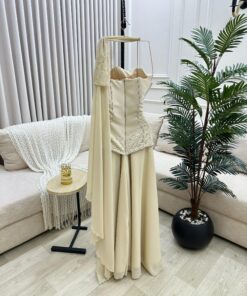 فستان بيج أنيق بلمسات ترتر: مزيج من الرقي والنعومة لإطلالة ساحرة
