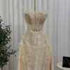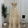 فستان بيج فاخر مع تطريزات لؤلؤية ونقوش زهرية