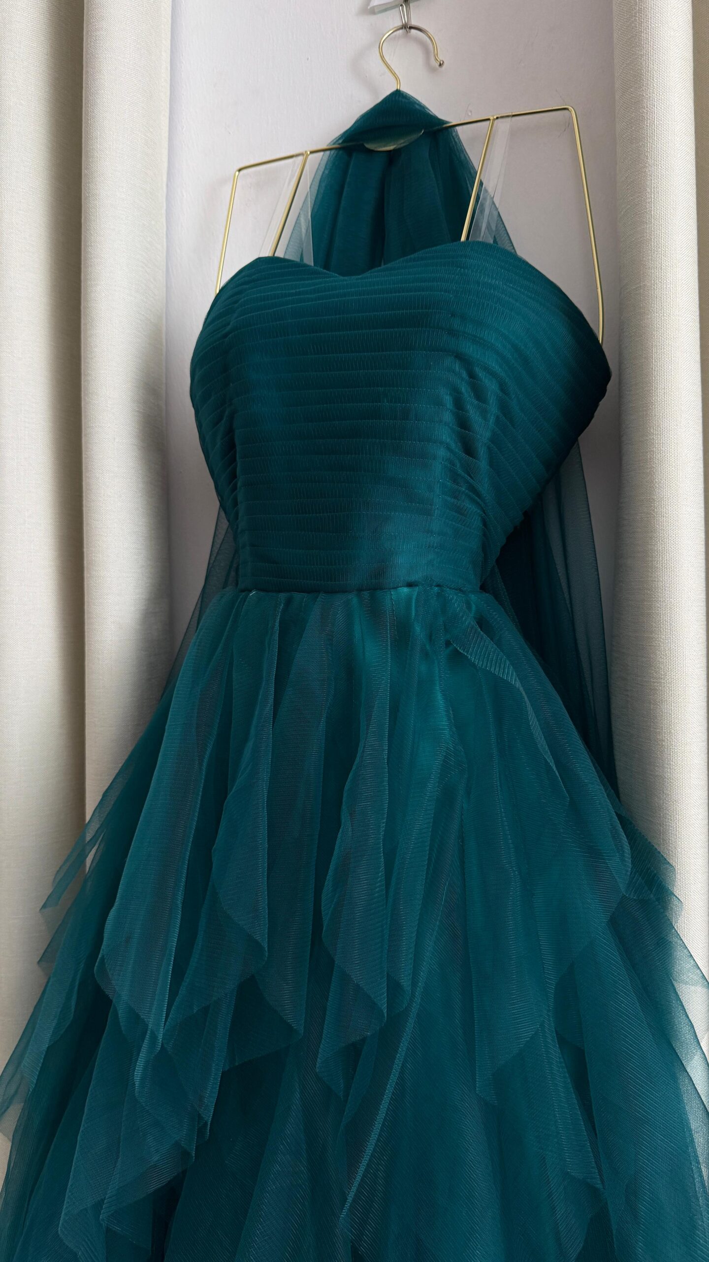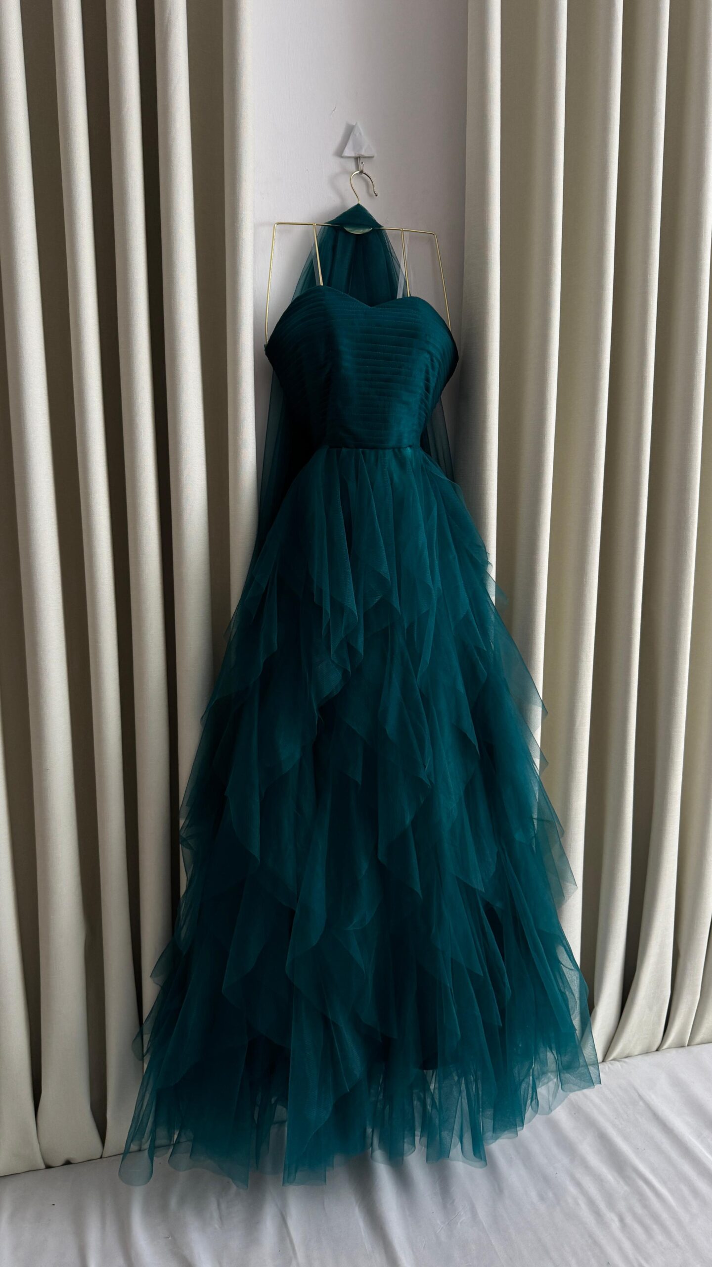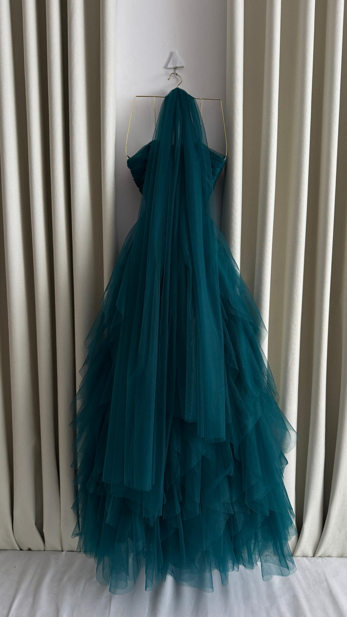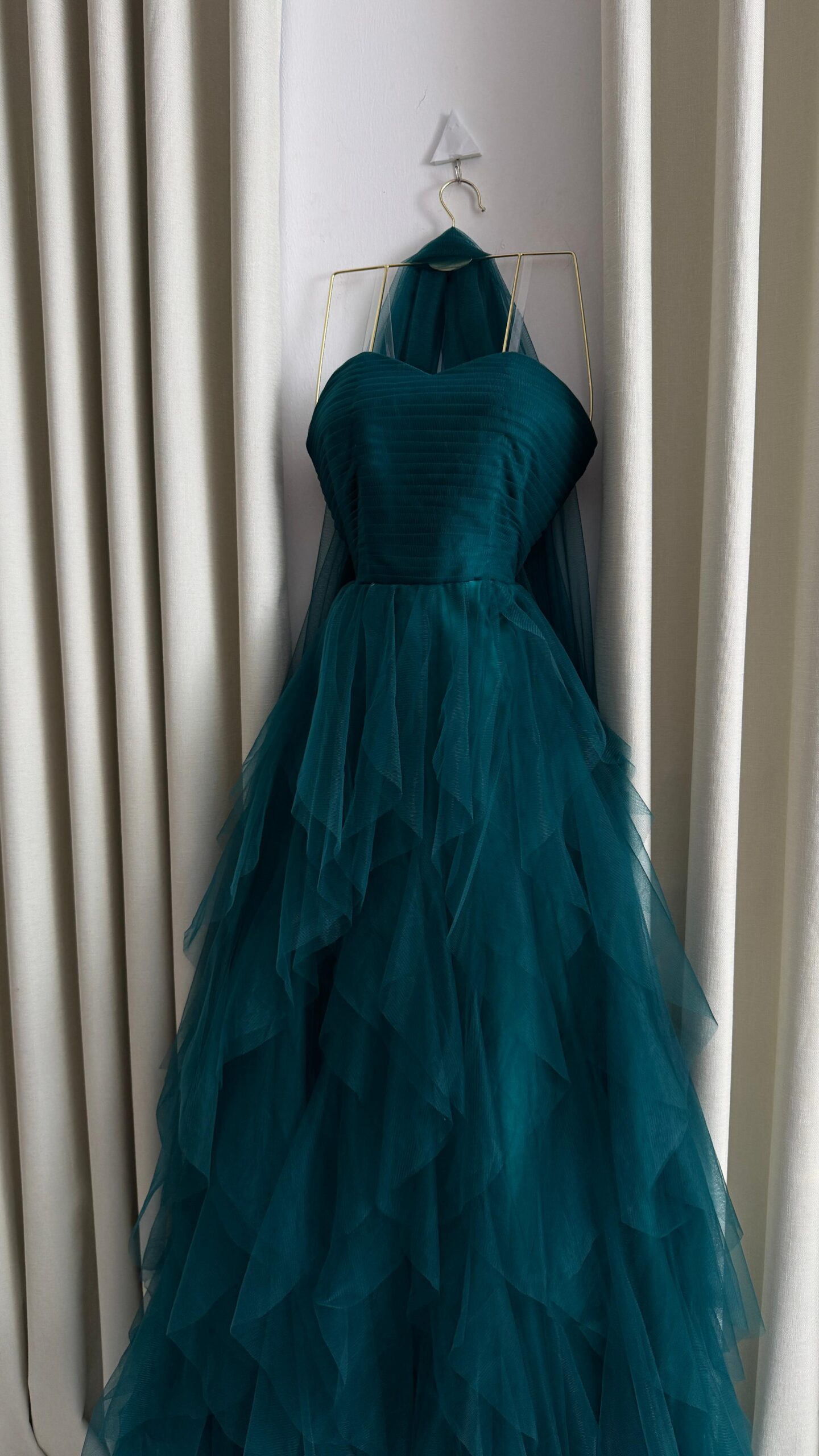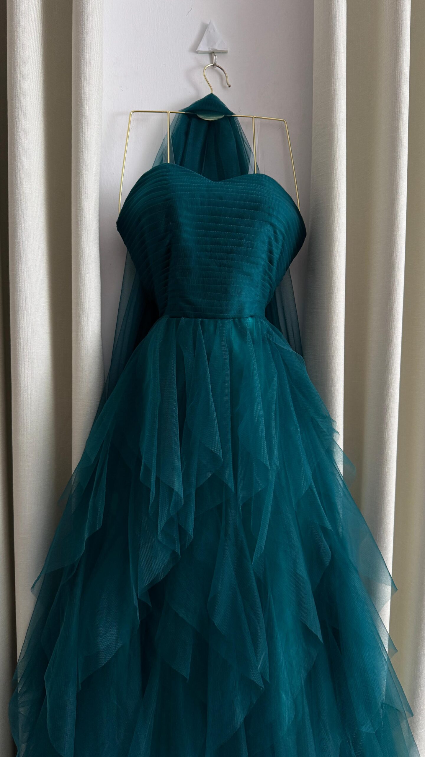 تألّقي بإطلالة راقية تفيض أنوثة مع فستان السهرة التركوازي الفاخر من متجر روزيتا، الوجهة الأولى لعاشقات الأناقة والفخامة في المملكة العربية السعودية.