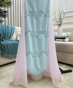 هل تبحثون عن مناظر أنثوية رائعة لتخطف الأنظار في مناسبتك القادمة؟ ضع هذا الأمر بعناية التركواز مع الذيل الوردي الذي يجمع بين الرقي والنعومة في تصميم واحد.