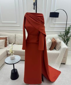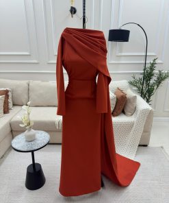 فستان حفلة أنيق يتميز بتصميم عصري يمنحك إطلالة جذابة في السهرات والمناسبات الخاصة. يتمتع بقصة أنثوية جميلة تبرز جمال القوام مع تفاصيل راقية تضيف.