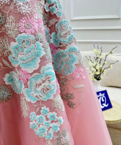 فستان سندريلا الوردي: أناقة الأميرات بتطريز ناعم