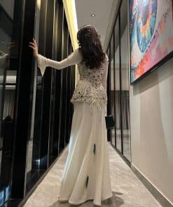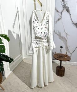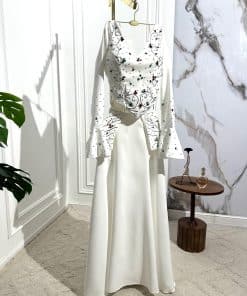 فستان سهرة أبيض أنيق بتصميم فاخر