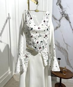 فستان سهرة أبيض يتميز بتصميم أنيق يمنحك إطلالة ناعمة وجذابة في السهرات والمناسبات. اللون الأبيض يضيف لمسة من الرقي والأناقة، كما أن تفاصيل الفستان.