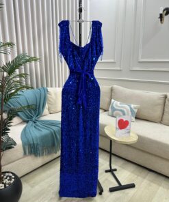 كمية فستان سهرة أحمر أزرق