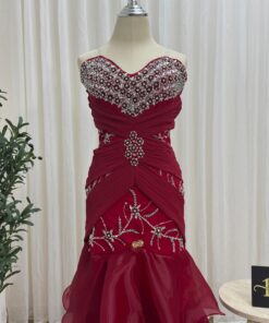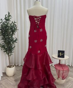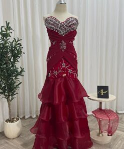 فستان سهرة أحمر بترف الكريستال – إطلالة تخطف الأبصار من أول نظرة
