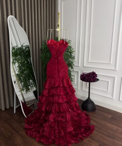 فستان سهرة أحمر جذاب بطبقات شيفون
