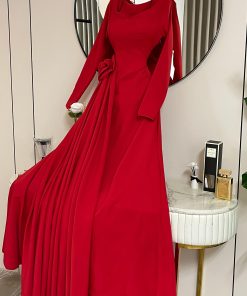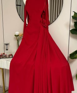 فستان سهرة أحمر طويل بطيات جانبية أنيقة