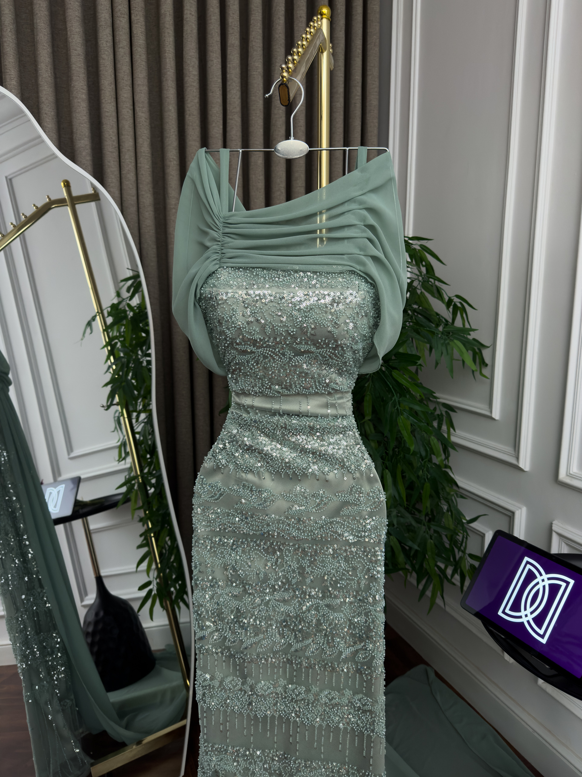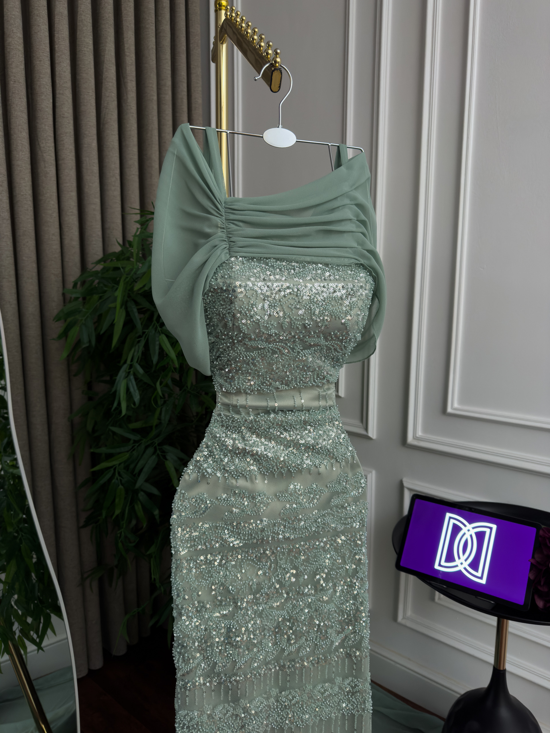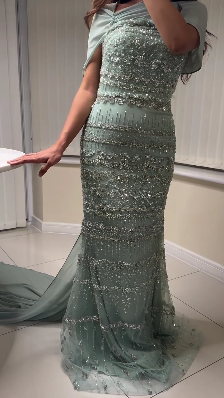 فستان سهرة أخضر فخم من روزيتا | أناقة سعودية بكل التفاصيل