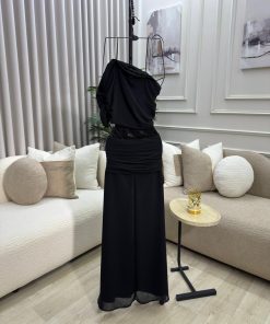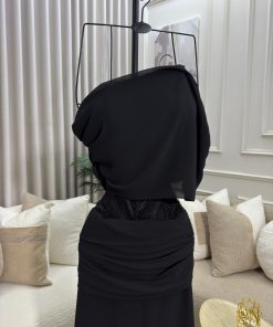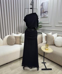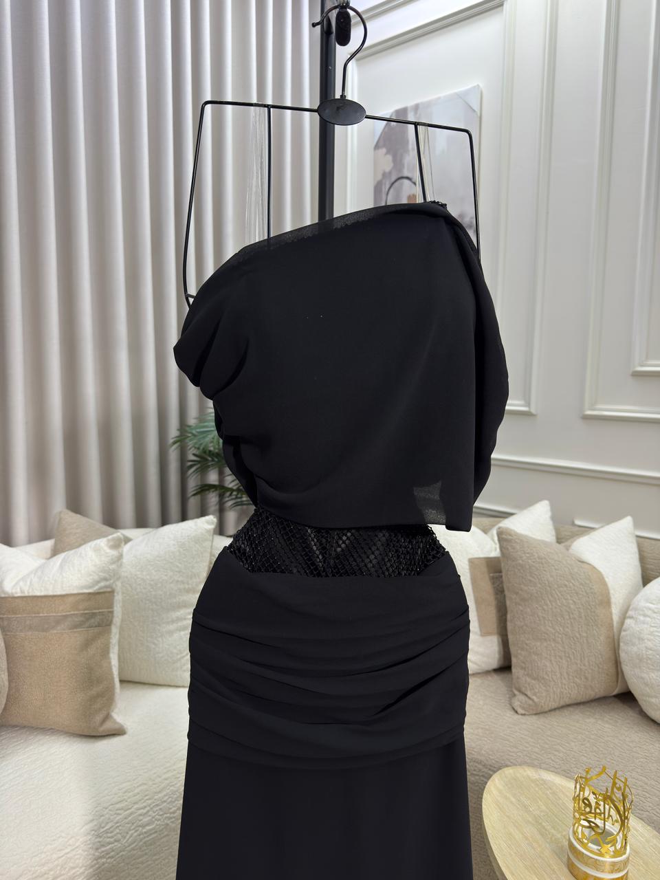يأتي الفستان بقماش ناعم وانسيابي ينسدل بأناقة مع تفاصيل بسيطة وراقية تضيف لمسة فخامة هادئة، مما يجعله خيارًا مثاليًا للسهرات، الحفلات المسائية، والمناسبات الخاصة. اللون الأسود الكلاسيكي يمنحك حضورًا قويًا وأناقة لا تزول.