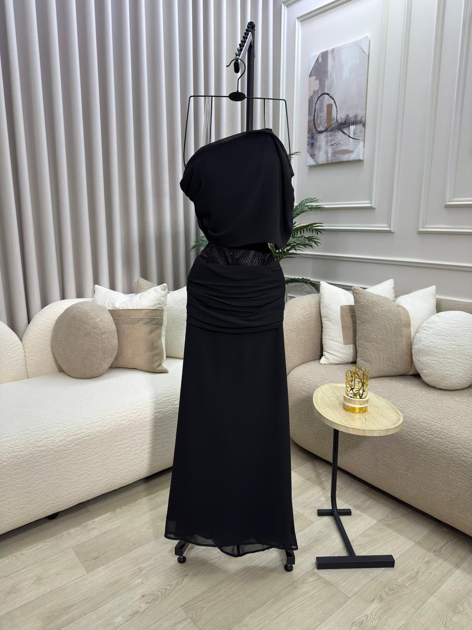 فستان سهرة أسود أنيق بتصميم كتف واحد