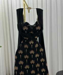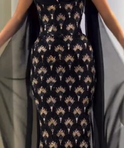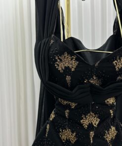 فستان سهرة أسود بتطريز فاخر لإطلالة ملكي