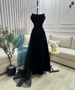 فستان سهرة أسود جوخ