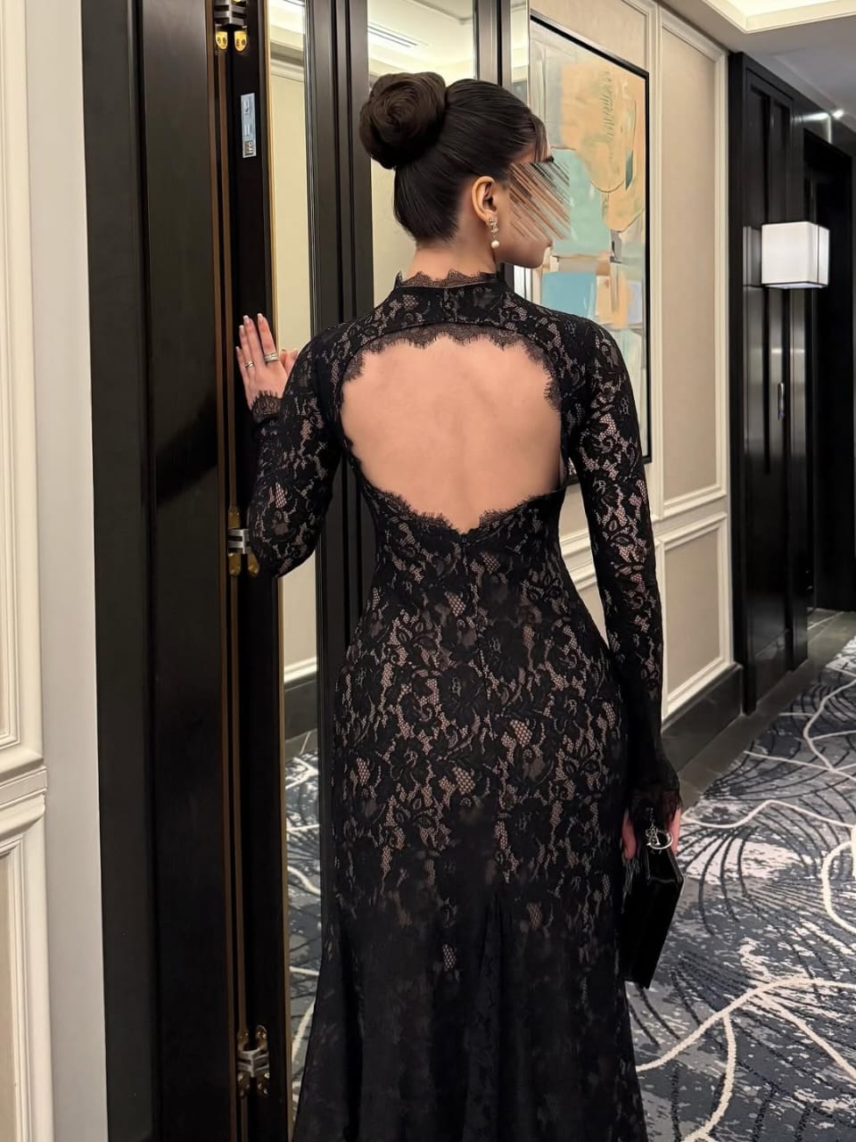 فستان دانتيل أسود.. أناقة فخمة من روزيتا