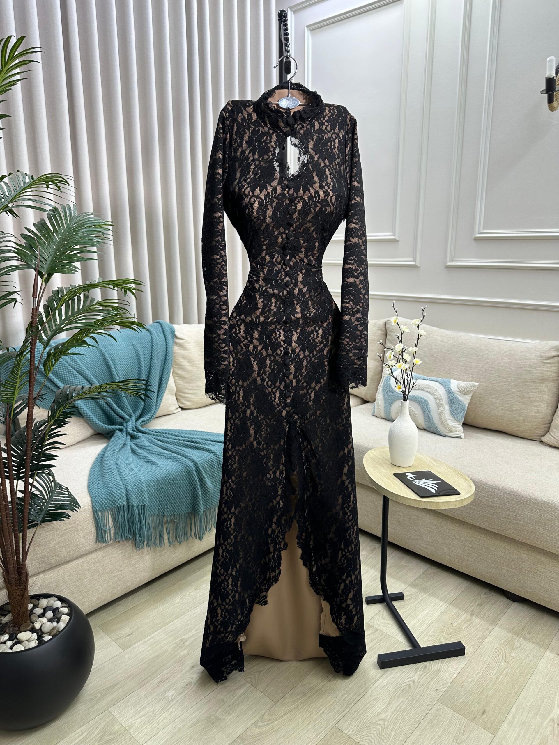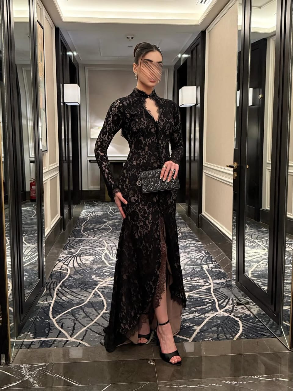 فستان الدانتيل الأسود من روزيتا يخلّيك تلفتين الأنظار بكل أناقة وثقة. تصميمه يجمع بين الستايل الكلاسيكي والفخامة العصرية، يناسب البنات اللي يحبّون يطلّون بإطلالة راقية وساحرة في المناسبات.