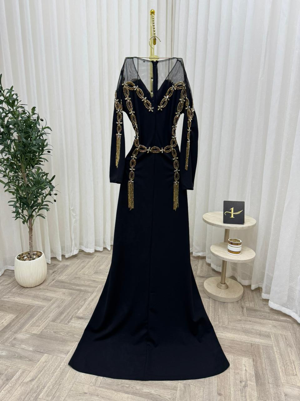 فستان سهرة أسود طويل