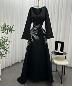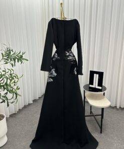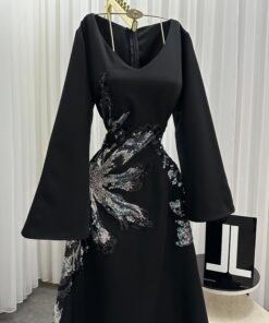 فستان أسود طويل بتطريز لامع – إطلالة ملكية تناسب كل المناسبات