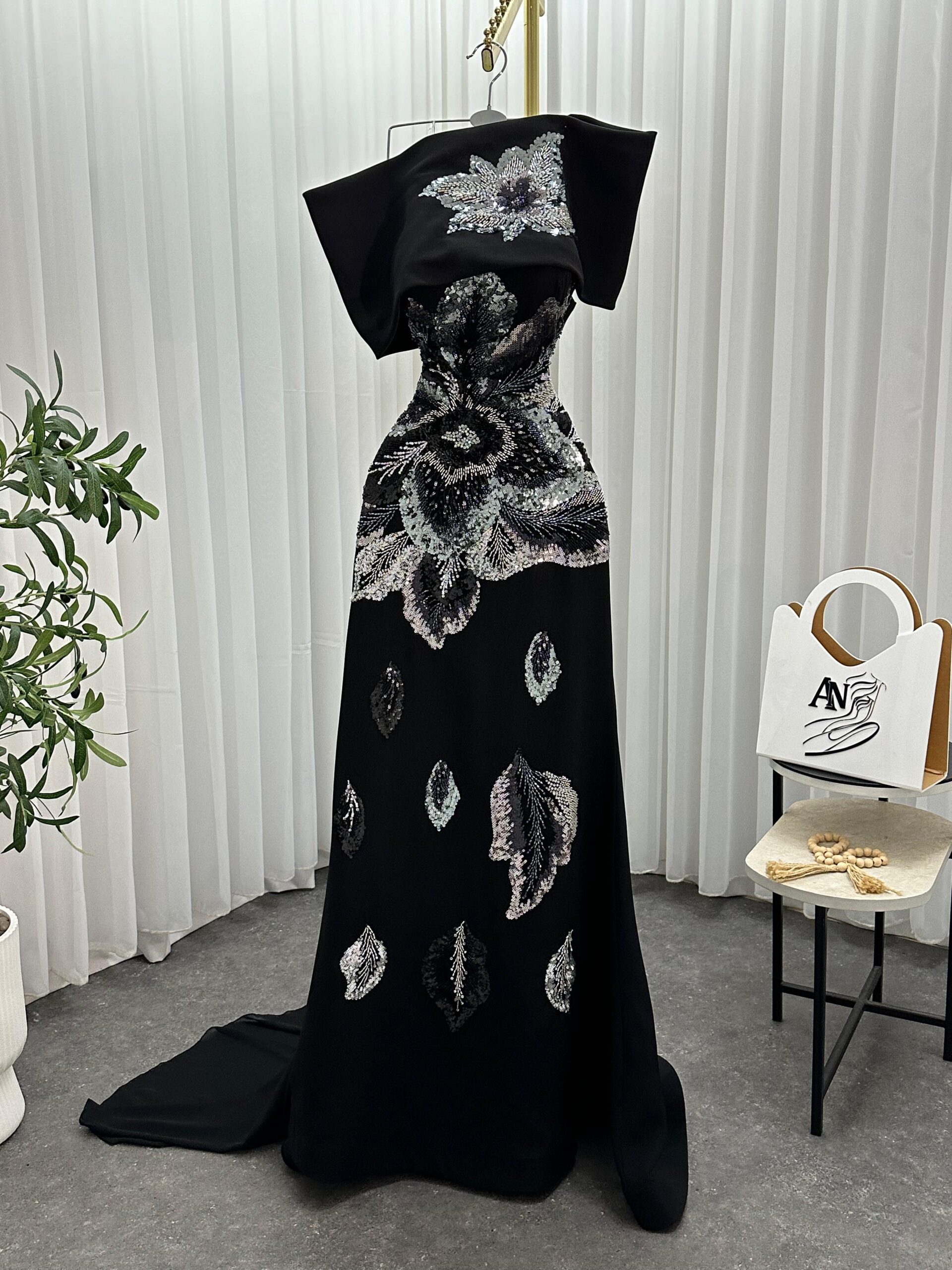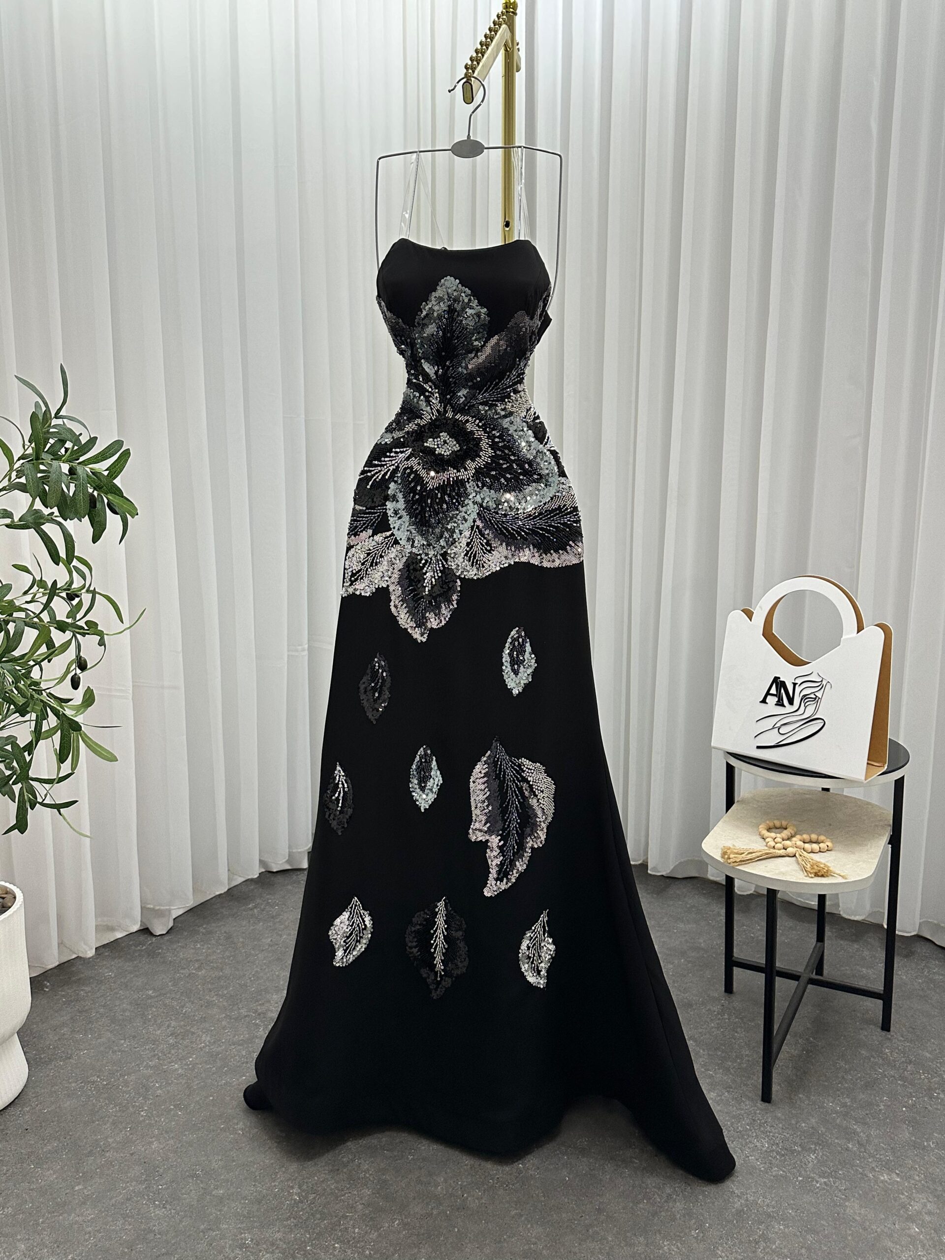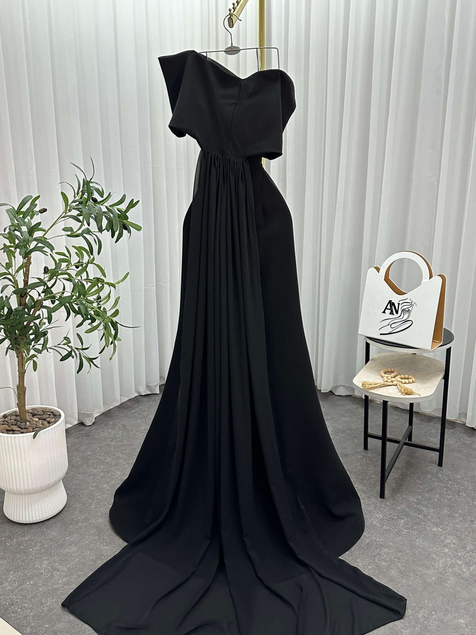 فستان سهرة أسود طويل