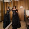 فستان سهرة أسود فاخر بتطريز أخضر
