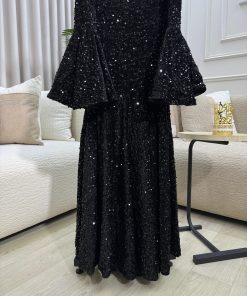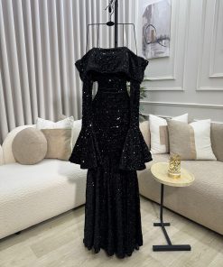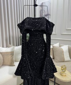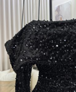 فستان سهرة أسود لامع أوف شولدر