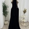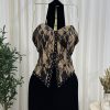 يقدّم لكِ متجر روزيتا السعودية هذا الفستان الأسود الرائع المزخرف بالدانتيل الأسود الذي يعكس الجمال والفخامة في تصميم واحد. يتميز الفستان بتفاصيل لؤلؤية دقيقة تعزز من إطلالتكِ الأنثوية الجذابة، مما يجعله خيارًا مثاليًا للمناسبات الفاخرة.