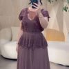 فستان سهرة أسود مزخرف بالدانتيل الأسود – إطلالة أنثوية ساحرة