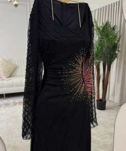 فستان سهرة أسود مطرز بالخرز بألوان متدرجة – متجر روزيتا السعودية
