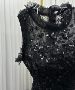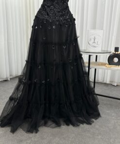 تميّزي بإطلالة تخطف الأنظار مع هذا الفستان الأسود الساحر، المصمم بتفاصيل أنثوية راقية تجمع بين الأناقة والرقي. يتميز الفستان بجزء علوي من التول الشفاف المطرز بدقة عالية، ينساب منه تنورة واسعة بطبقات ناعمة مزينة بالتطريز اليدوي البراق. التصميم يعكس فخامة المساء وسحر الأضواء، ما يجعله الخيار المثالي للحفلات الراقية أو المناسبات