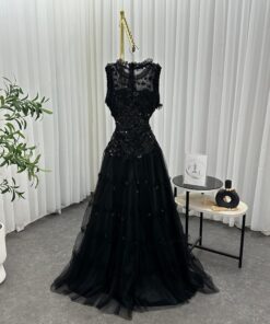 فستان سهرة أسود ملكي بتطريزات فاخرة ولمسة رومانسية